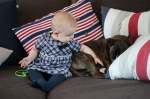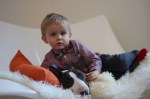 Vår son Alfred älskar att gosa med hundarna. Vi är så glada att ha barnvänliga och kärleksfulla hundar och lika glada över att ha barn som lärt sig respektera hundarna på lika villkor.